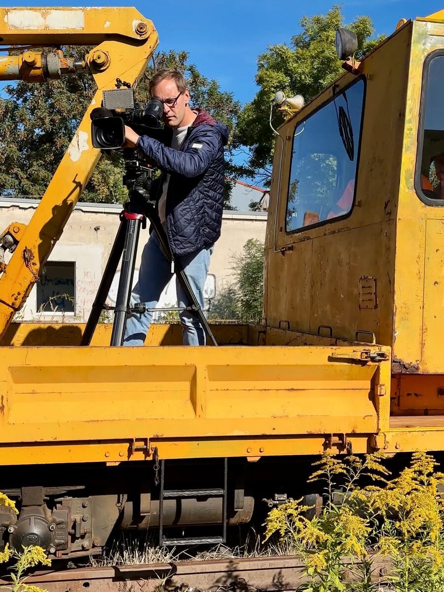 Zum 20. Unstrutbahnfest am 03.10.2025 in Roßleben war auch MDR Thüringen mit einem Kamerateam vor Ort und berichtete am Abend beim Wetterbericht darüber. (Foto: Philipp Spannemann) Frank Thomas
