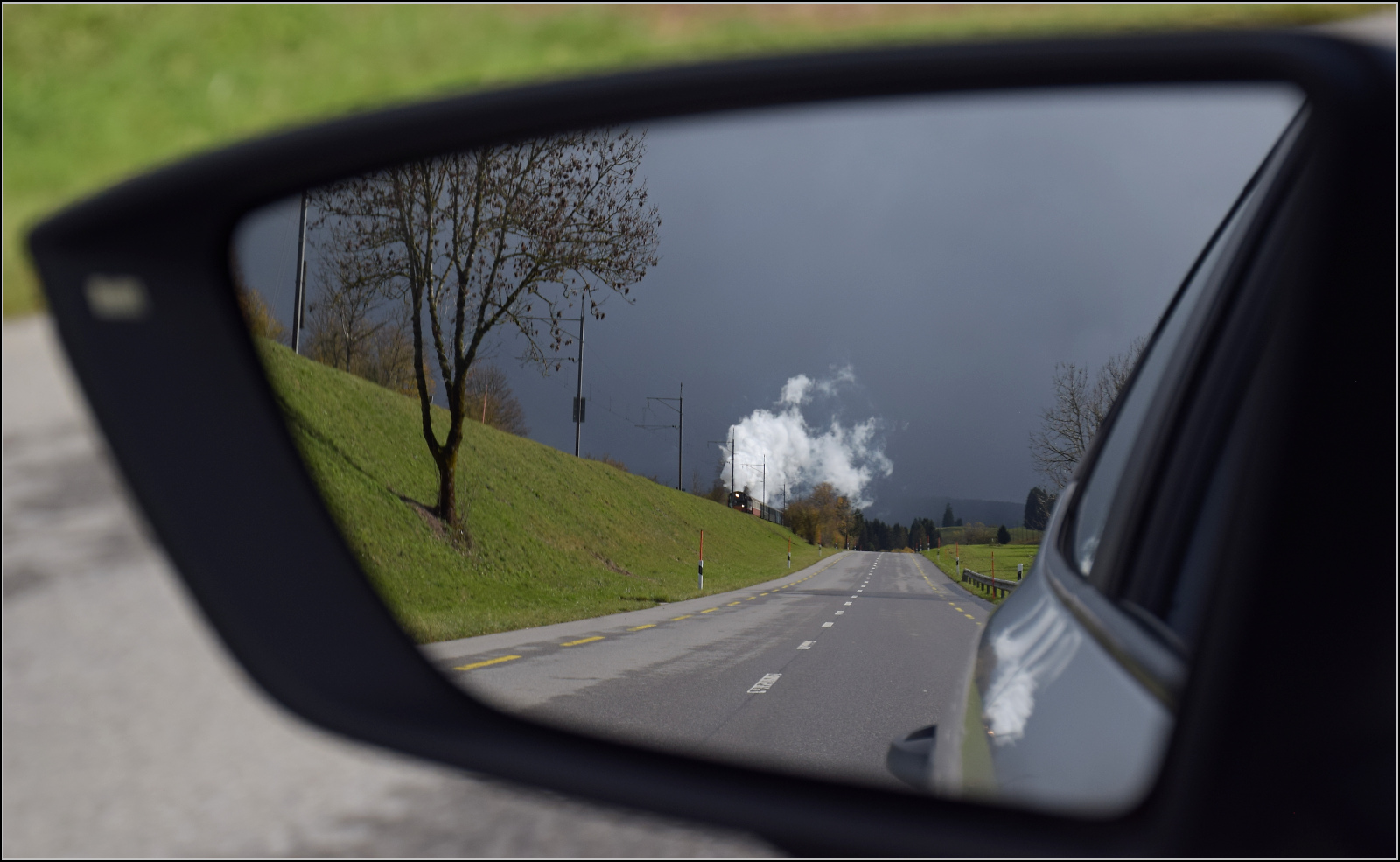 Gruseln zwischen Asphalt und Absinth. TKp 16 'Śląsk' fährt mit ihrem Halloweenzug zum den Scheitelpunkt der Strecke. Les Tourbières, Oktober 2025. km0