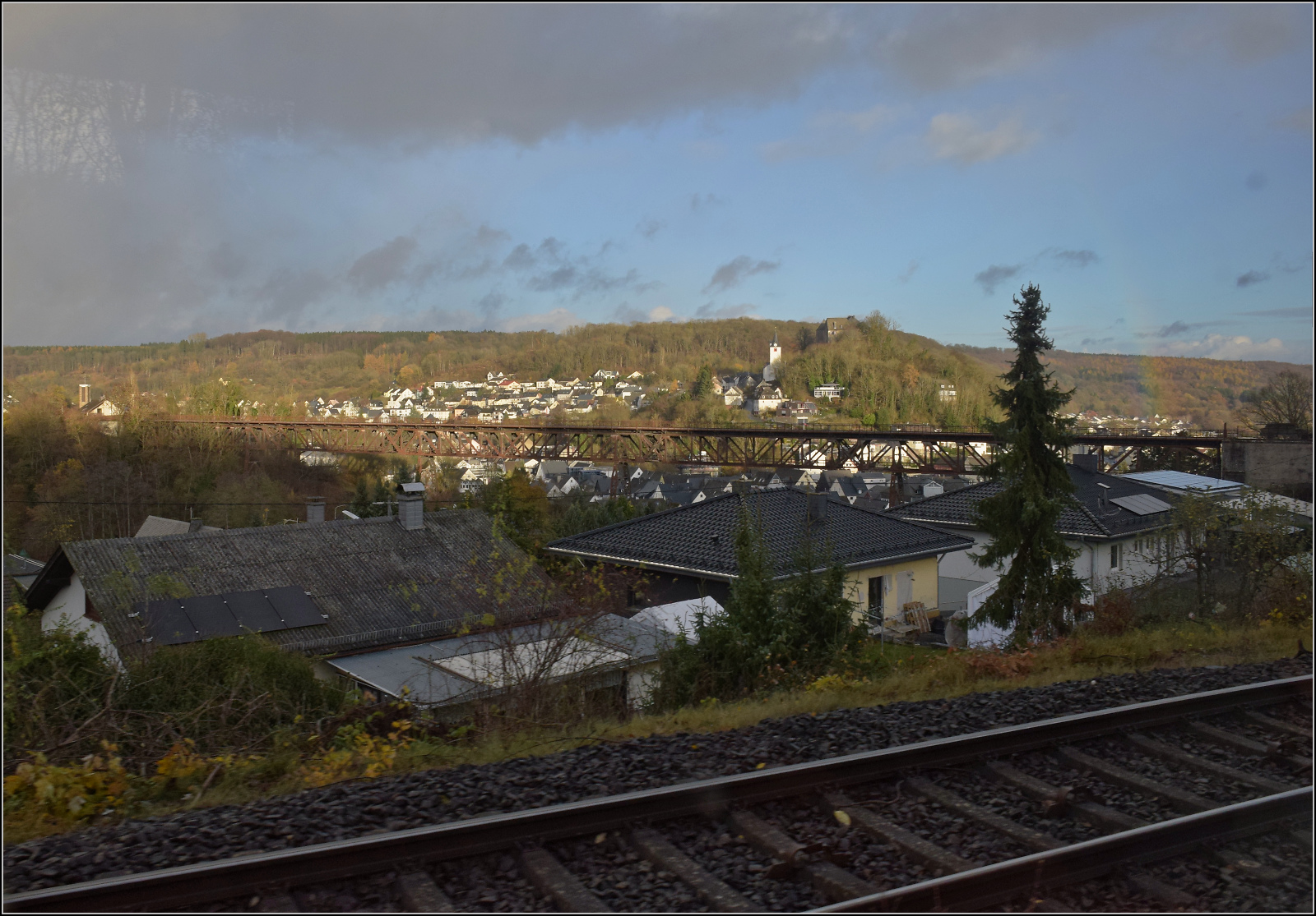 Blick auf die große Brücke der Westerwaldquerbahn in Westerburg. November 2025.