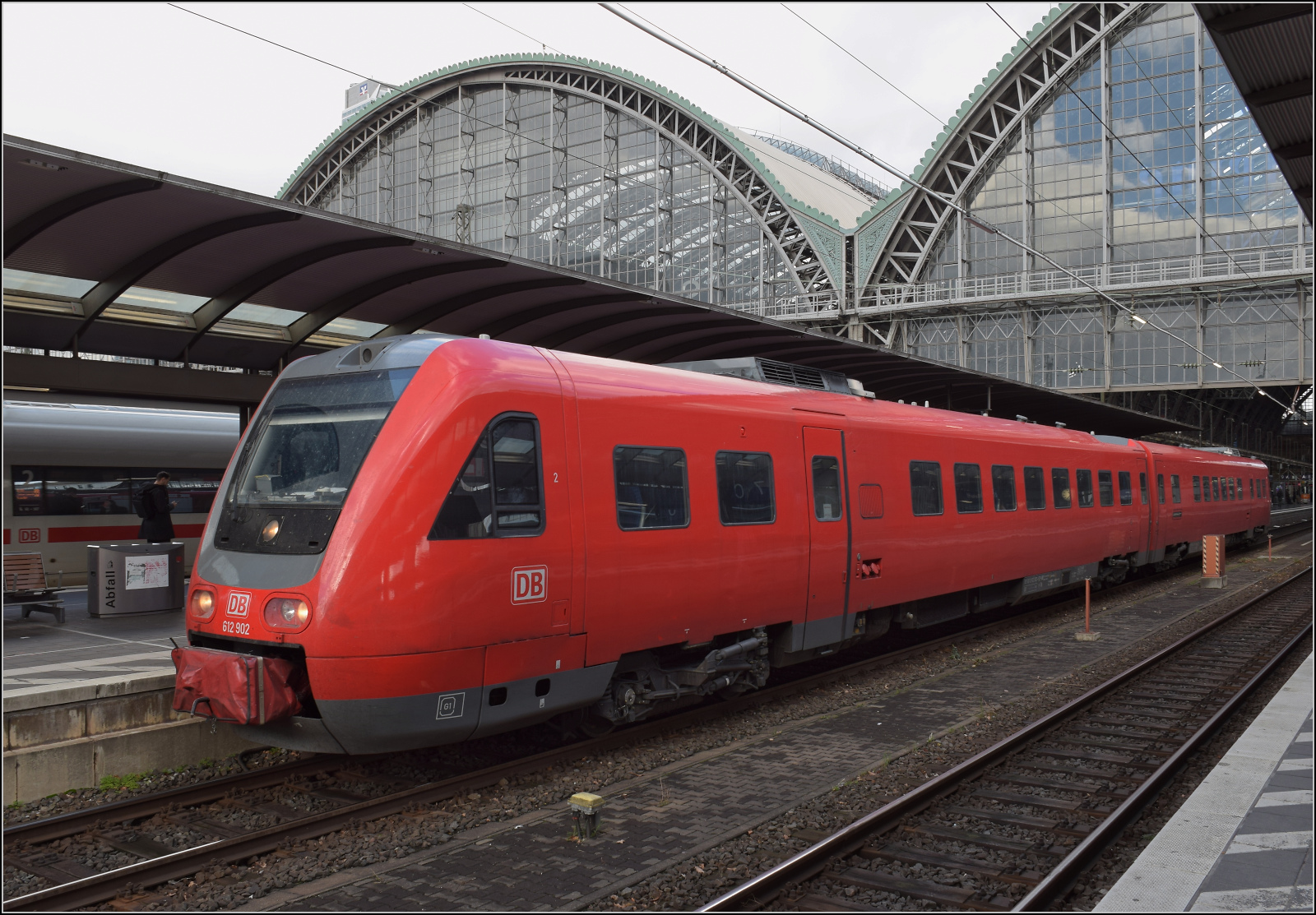 Überraschend schaut in Frankfurt noch schnell der Messzug 612 901/902 in den Bahnhof. November 2025.