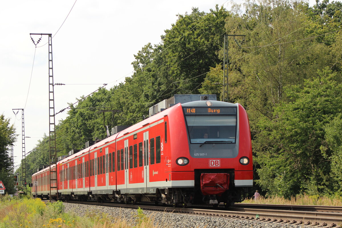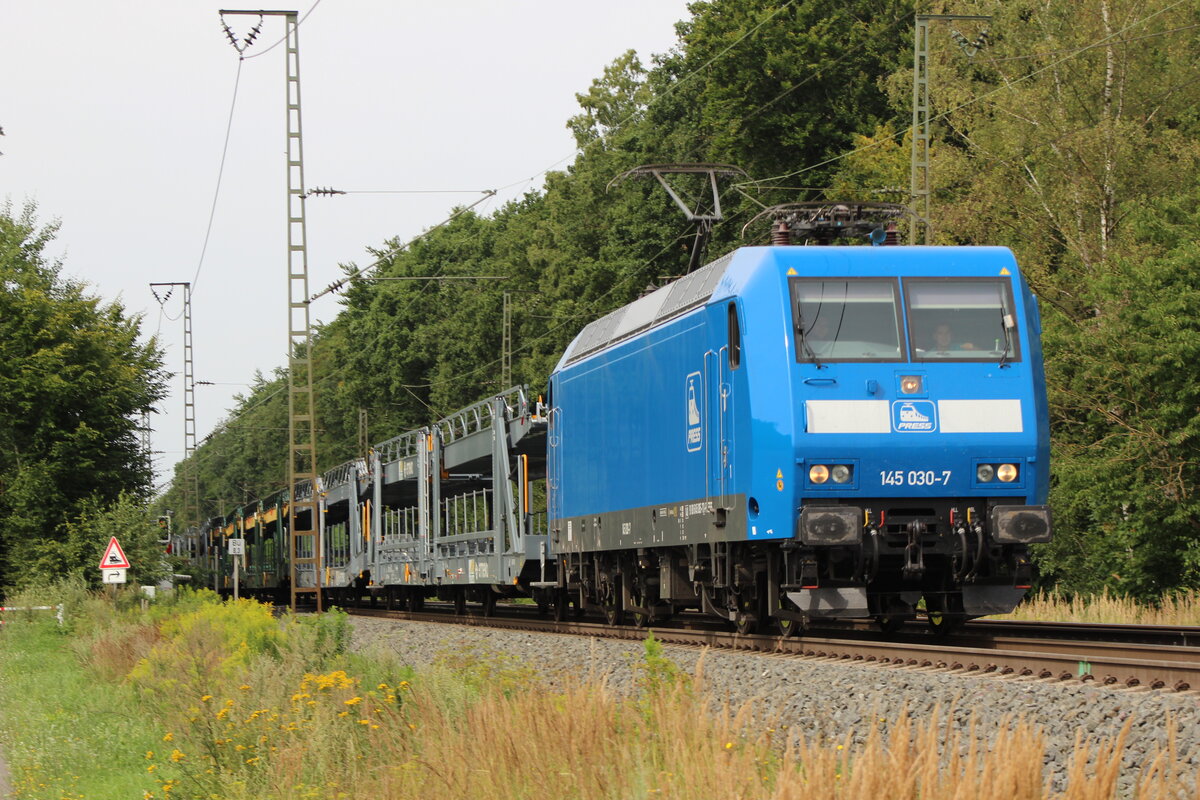 BR 111 215-0 D-RADVE als Überführung von Bauzug aus Skandinavien bei der Durchfahrt Weddel (b.Braunschweig) Richtung Magdeburg/Wolfsburg. 9.August 2025 Dominik Klöpfer