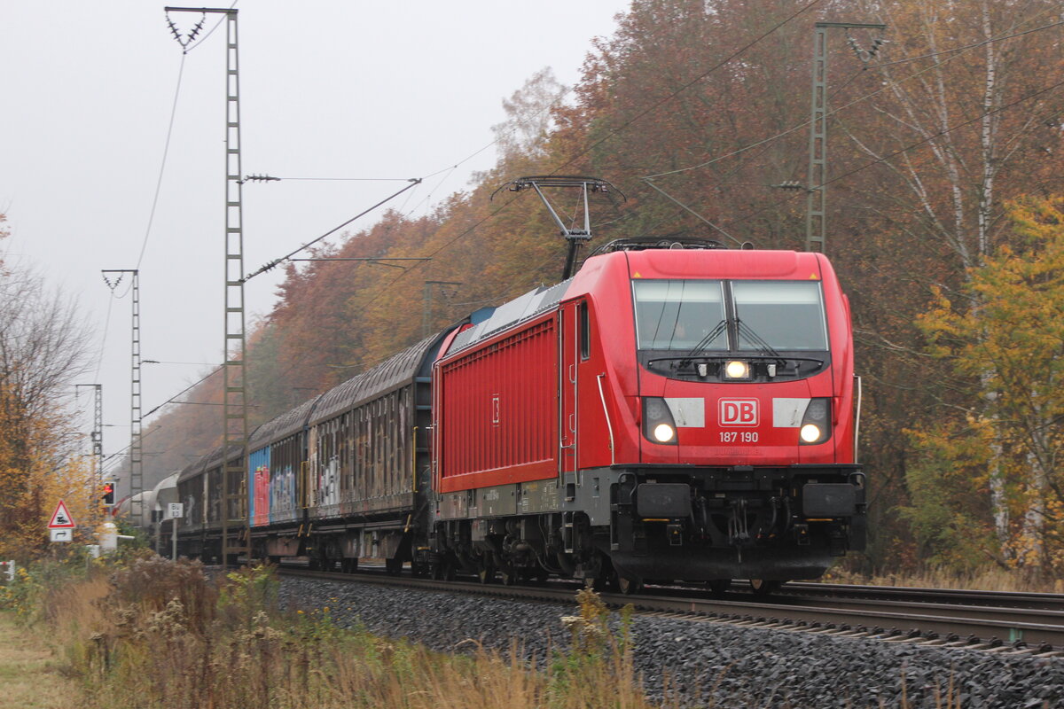 BR 266 039-7 D-BRLL ("Jerzy Zabecki") mit einem Weizenzug der Durchfahrt Weddel (b.Braunschweig) Richtung Magdeburg/Wolfsburg. 8.November 2025 Dominik Klöpfer