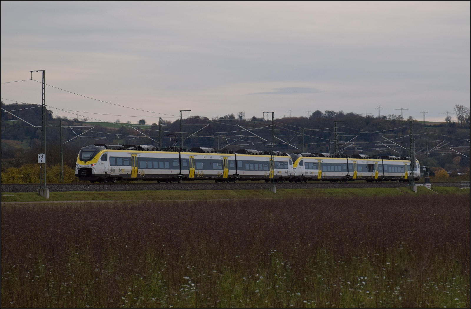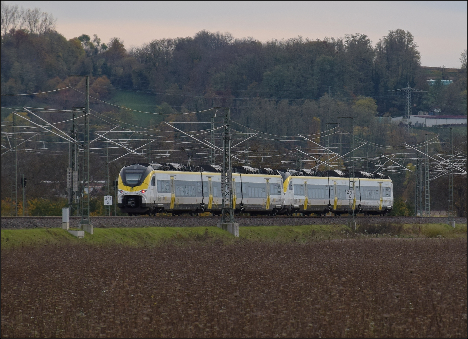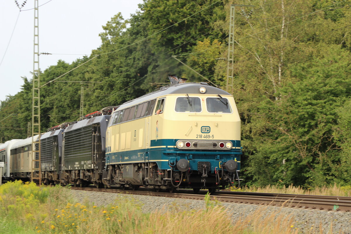 BR 218 469-5 D-RPRS mit 189 208 + 189 211 + 2x Desiro HC für Israel + 189 157 + 189 151 als Überführung der Durchfahrt Weddel (b.Braunschweig) Richtung Magdeburg/Wolfsburg. 8.November 2025 Dominik Klöpfer