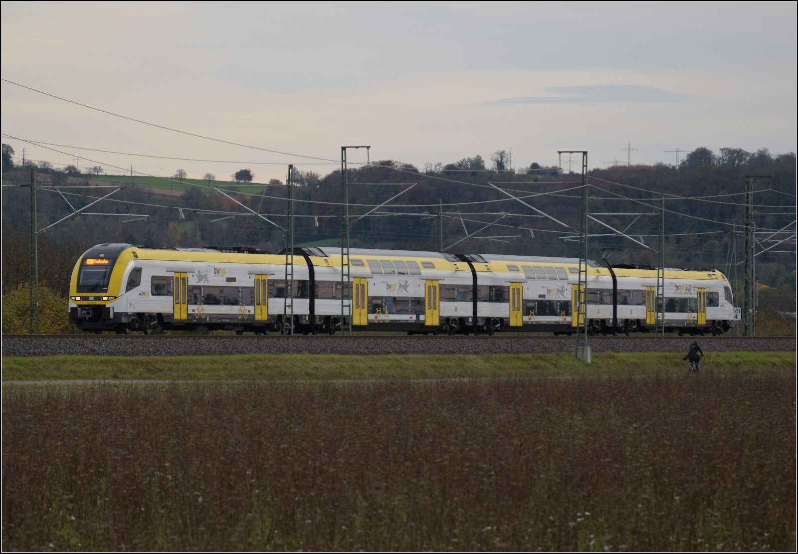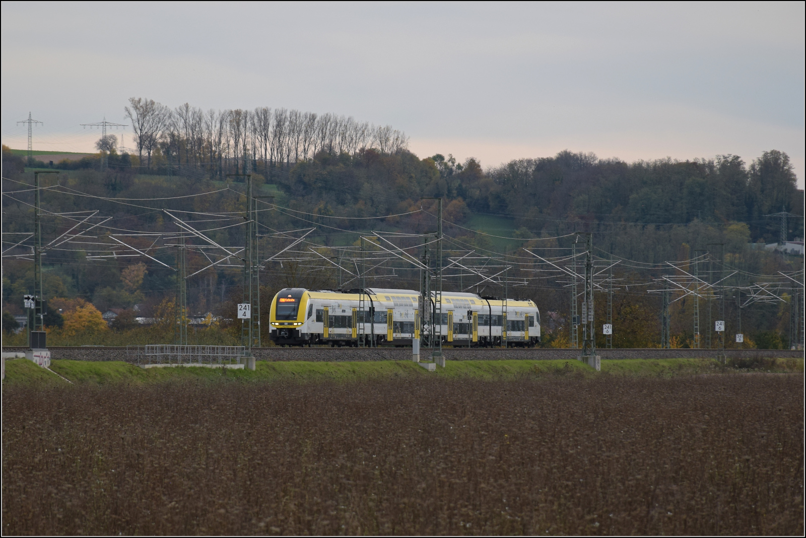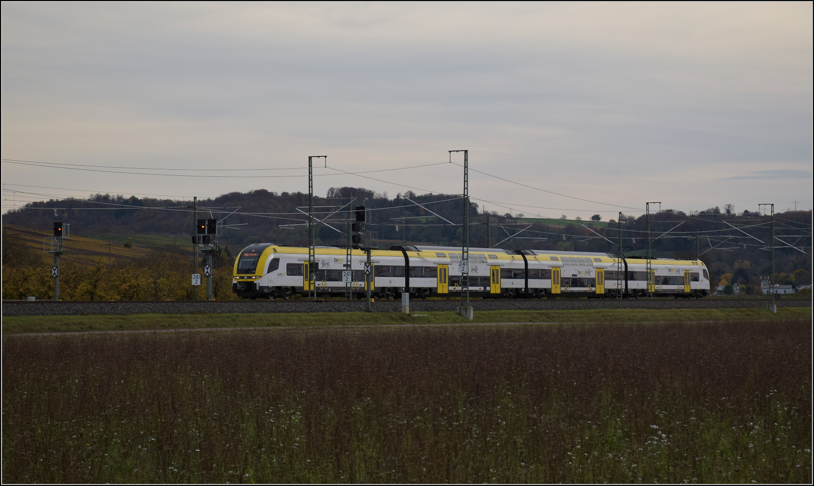 BR 218 469-5 D-RPRS mit 189 208 + 189 211 + 2x Desiro HC für Israel + 189 157 + 189 151 als Überführung der Durchfahrt Weddel (b.Braunschweig) Richtung Magdeburg/Wolfsburg. 8.November 2025 Dominik Klöpfer