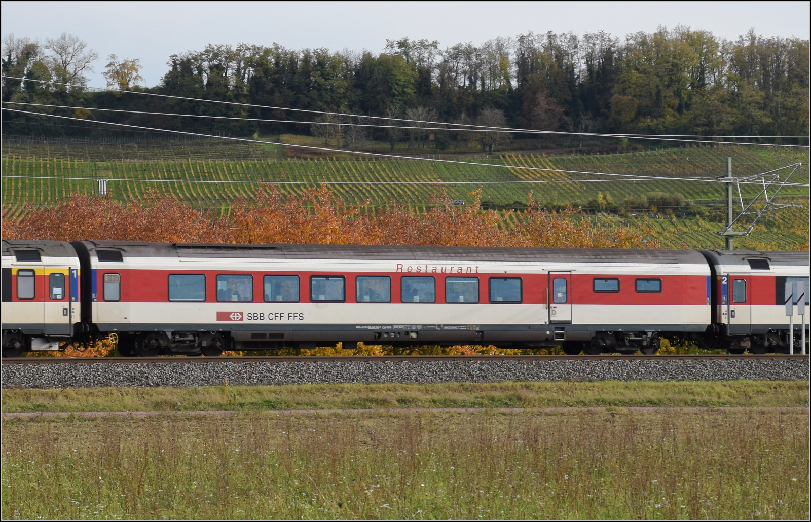 101 134 mit dem EC 6 auf dem Weg nach Dortmund. Im Bild ist der Speisewagen WRm 61 85 88-94 108-7 61 85 10-90 228-0 CH-SBB. Diese Speisewagen sind die einzigen EW IV-Wagen, die über Konstanz und Singen hinaus Reisen fernab der Schweiz antreten. Oktober 2025. km0