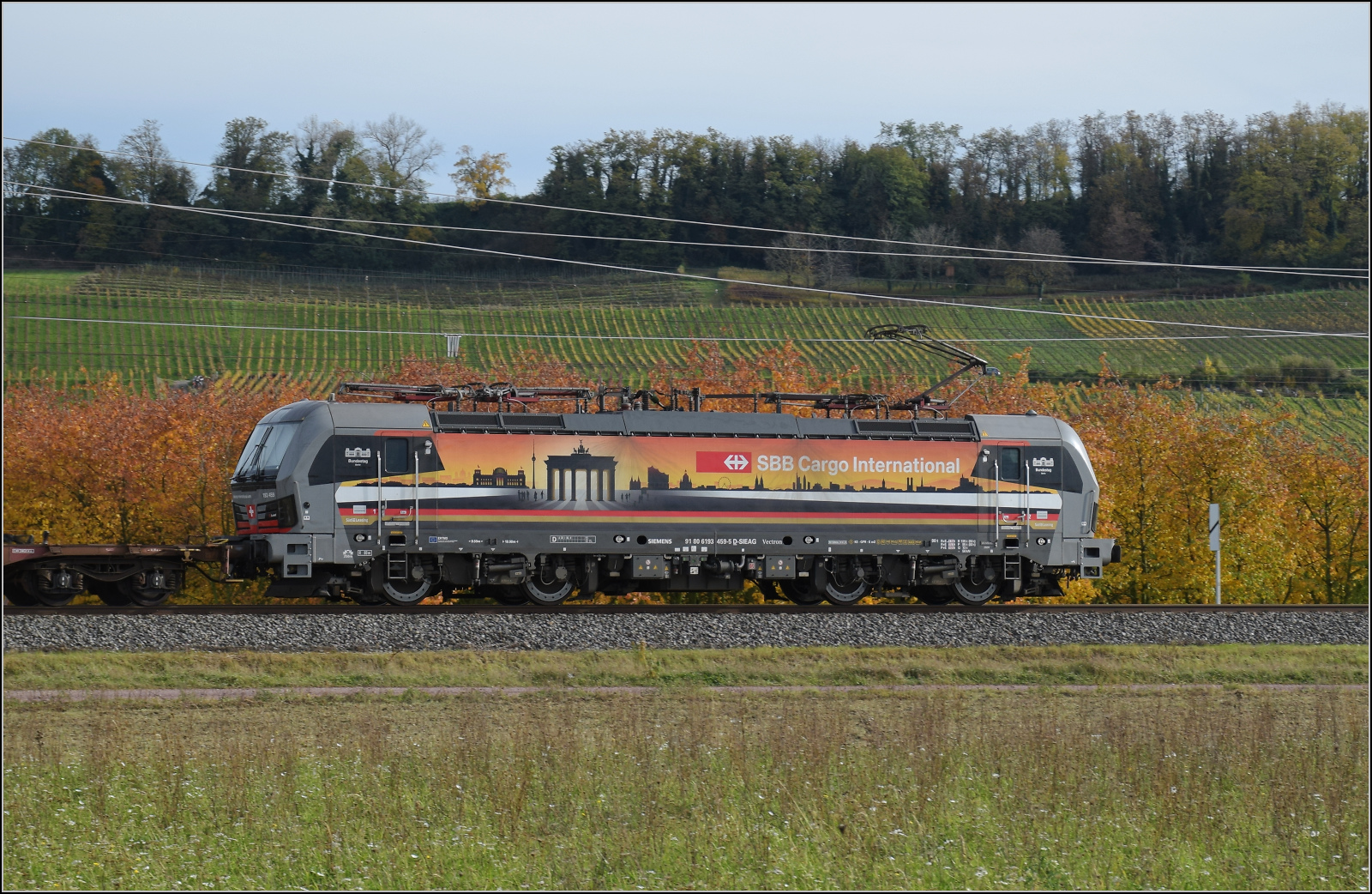 193 806 von Beacon in blau ist nordwärts unterwegs. Oktober 2025.