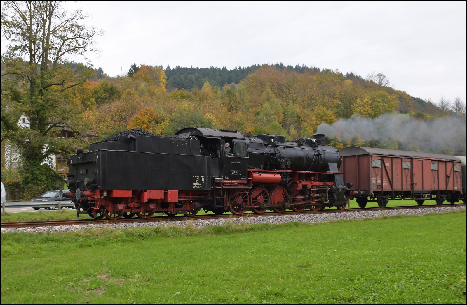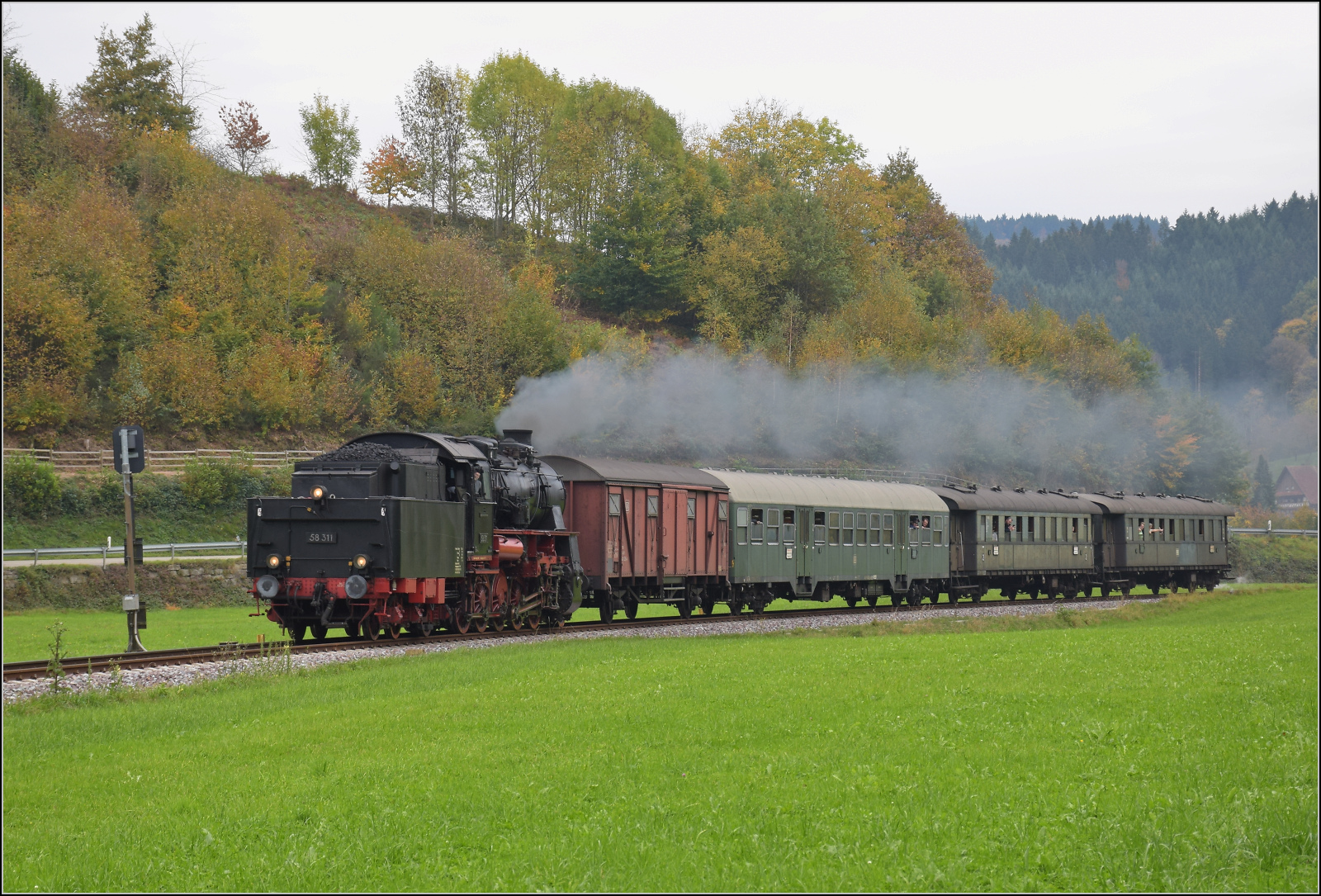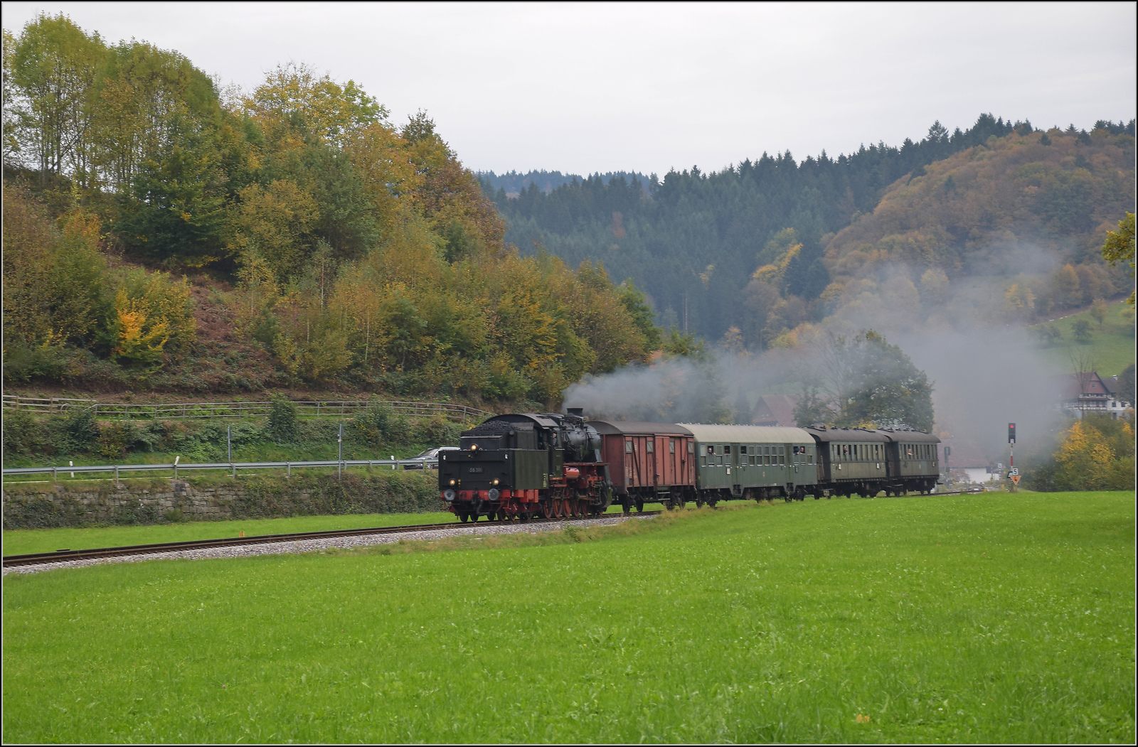 58 311 erreicht mit ihrem Sonderzug Kappelrodeck. Im Bild der Eilzugwagen 72 708 Dresden der Gattung B4i-30. Oktober 2025. km0