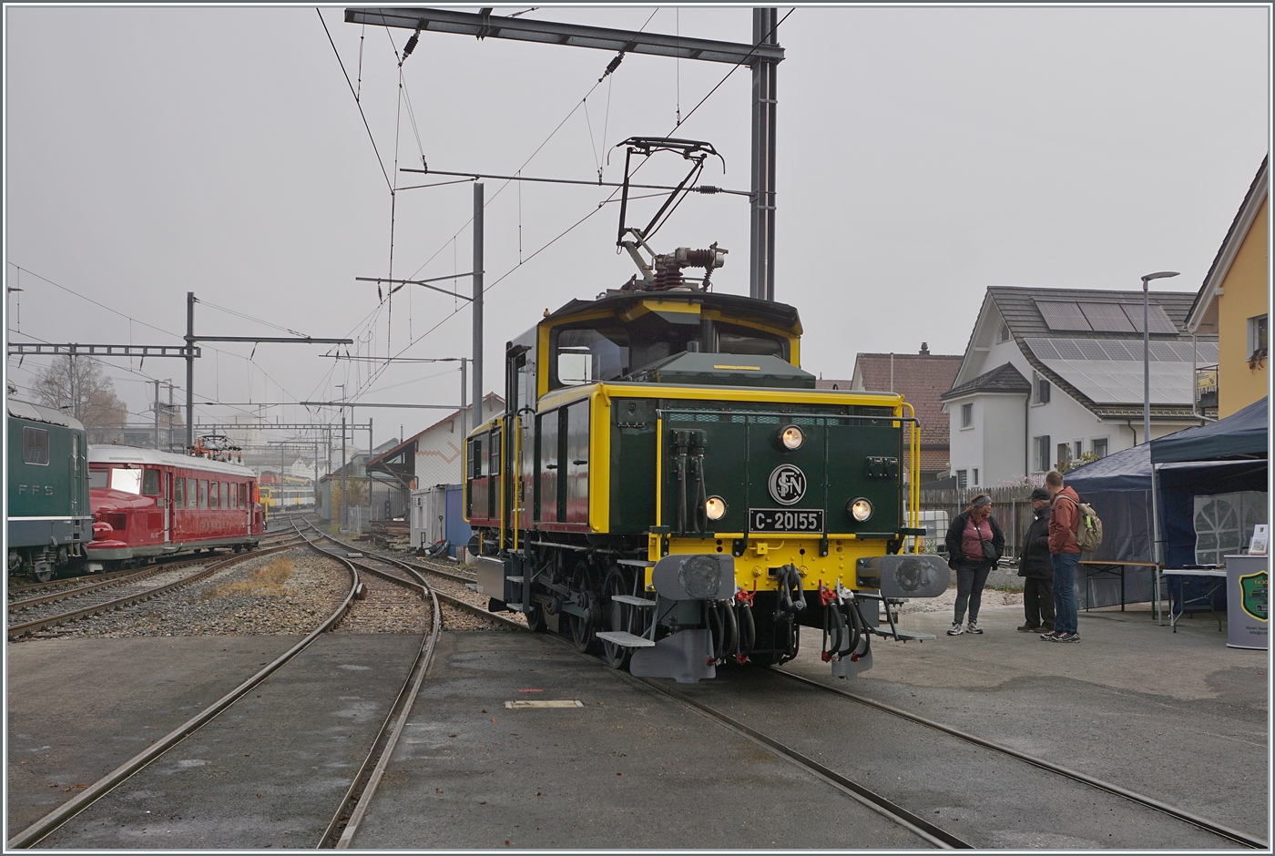 Im Rahmen der offenen Tür des Modellbahnclubs Balsthal zeigt sich die herrlich restaurierte SNCF C 20155 UIC N° 97 85 1 932-0 (ex SBB Ee 3/3 II 1615, ex SNCF C 20155) beim OeBB Depot von Balsthal.