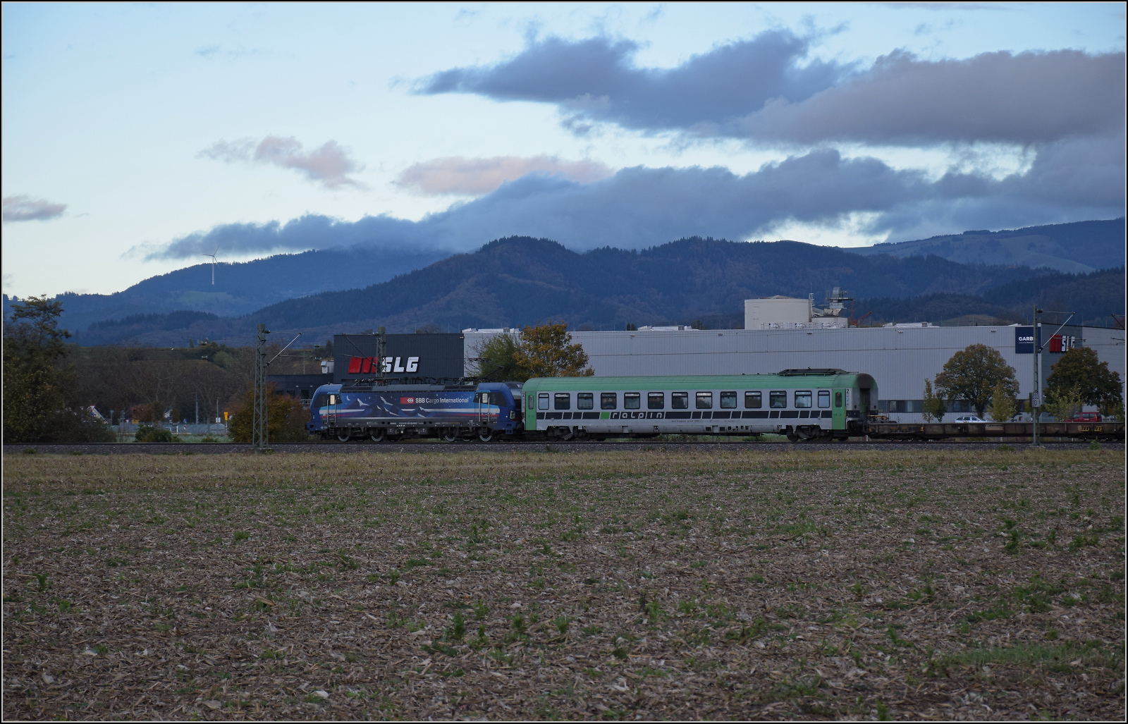 DB Regio AG mit ihrer vossloh G 6 Lok (NVR: "98 80 0650 114-8 D-DB") bei der Überführungsfahrt von einem DB Regio Doppelstockwagen + Steuerwagen Richtung Eisenhüttenstadt/Cottbus? am 01.12.25 Höhe Bahnhof Frankfurt/Oder. Lothar Stöckmann