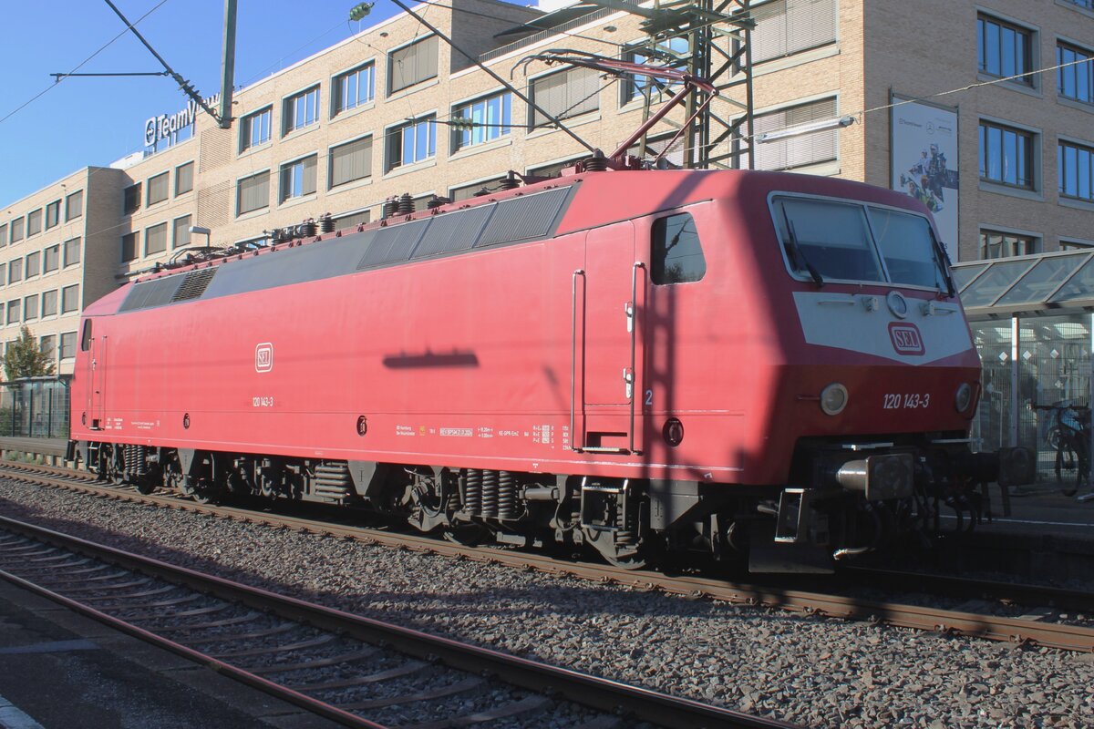 SEL 120 143 steht am 19 September 2025 in Göppingen und hat ein Pantograf gehoben.