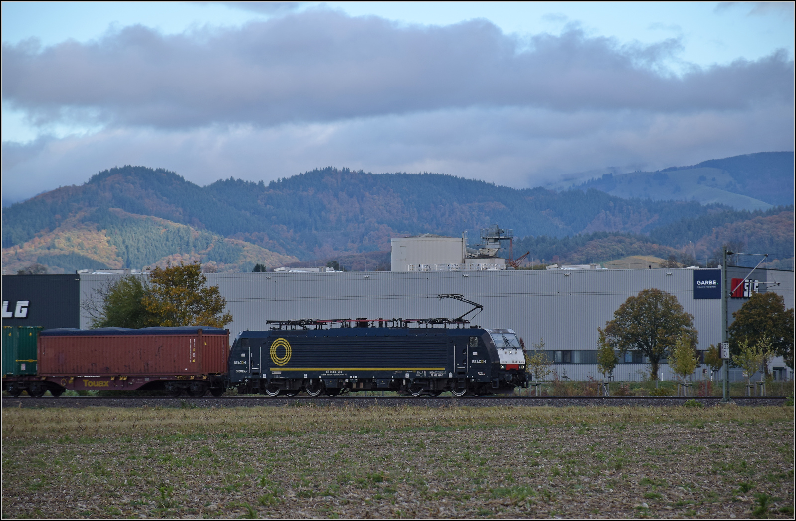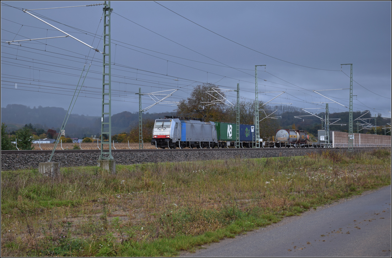 Am 24 September 2025 durchfahrt Metrans 187 507 südwärts der Bahnhof von Fulda.