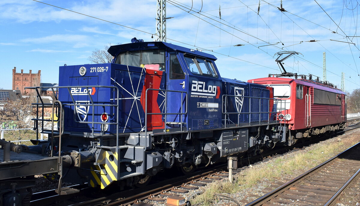 DB Cargo AG, Mainz [D] mit ihren Voith Gravita 10 BB "261 082-2" (NVR: "92 80 1261 082-2 D-DB") + "261 063-2" (NVR: "92 80 1261 063-2 D-DB") und einer Reihe Güterwagen zur Übergabe am 03.03.26 Höhe Bahnhof Magdeburg-Neustadt. Lothar Stöckmann