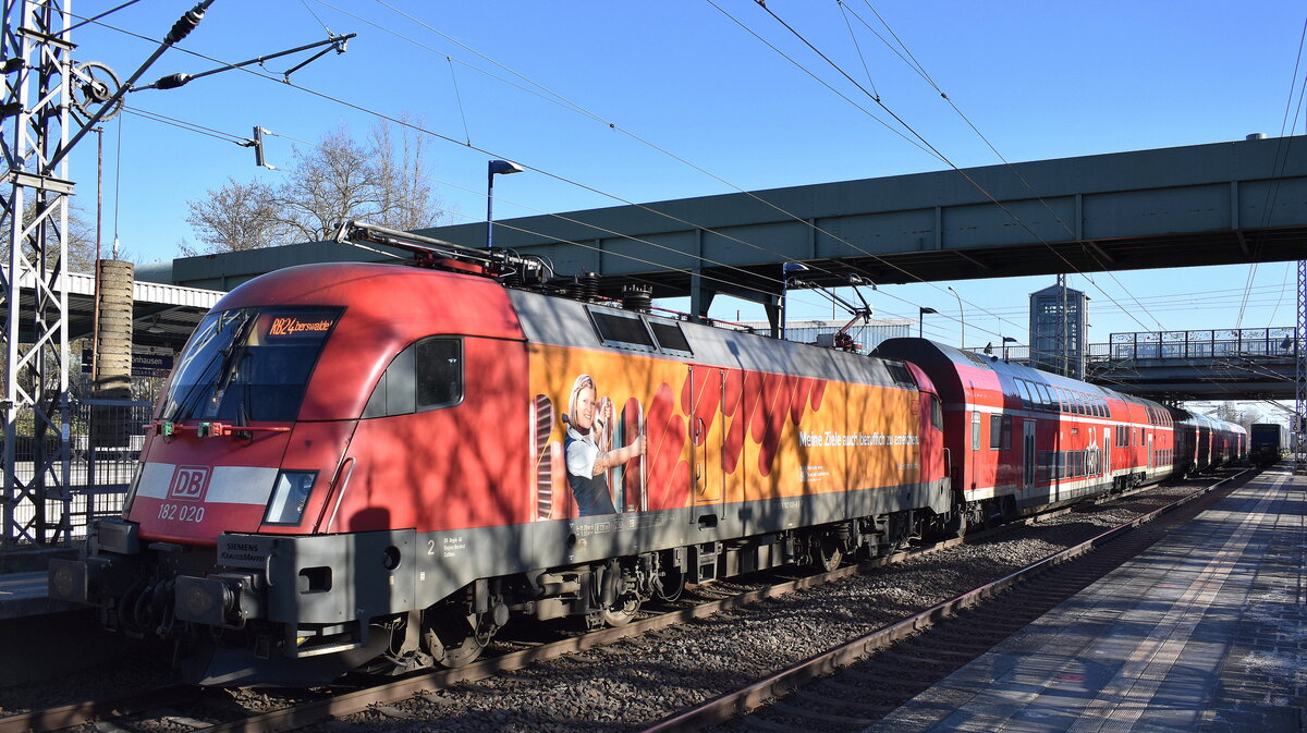 DB Regio AG - Region Nordost, Fahrzeugnutzer: Regionalbereich Berlin/Brandenburg - Potsdam mit ihrer "182 020" (NVR: "91 80 6182 020-8 D-DB") und der RB24 nach Eberswalde Hbf. am 04.03.26 im Bahnhof Berlin-Hohenschönhausen. Lothar Stöckmann