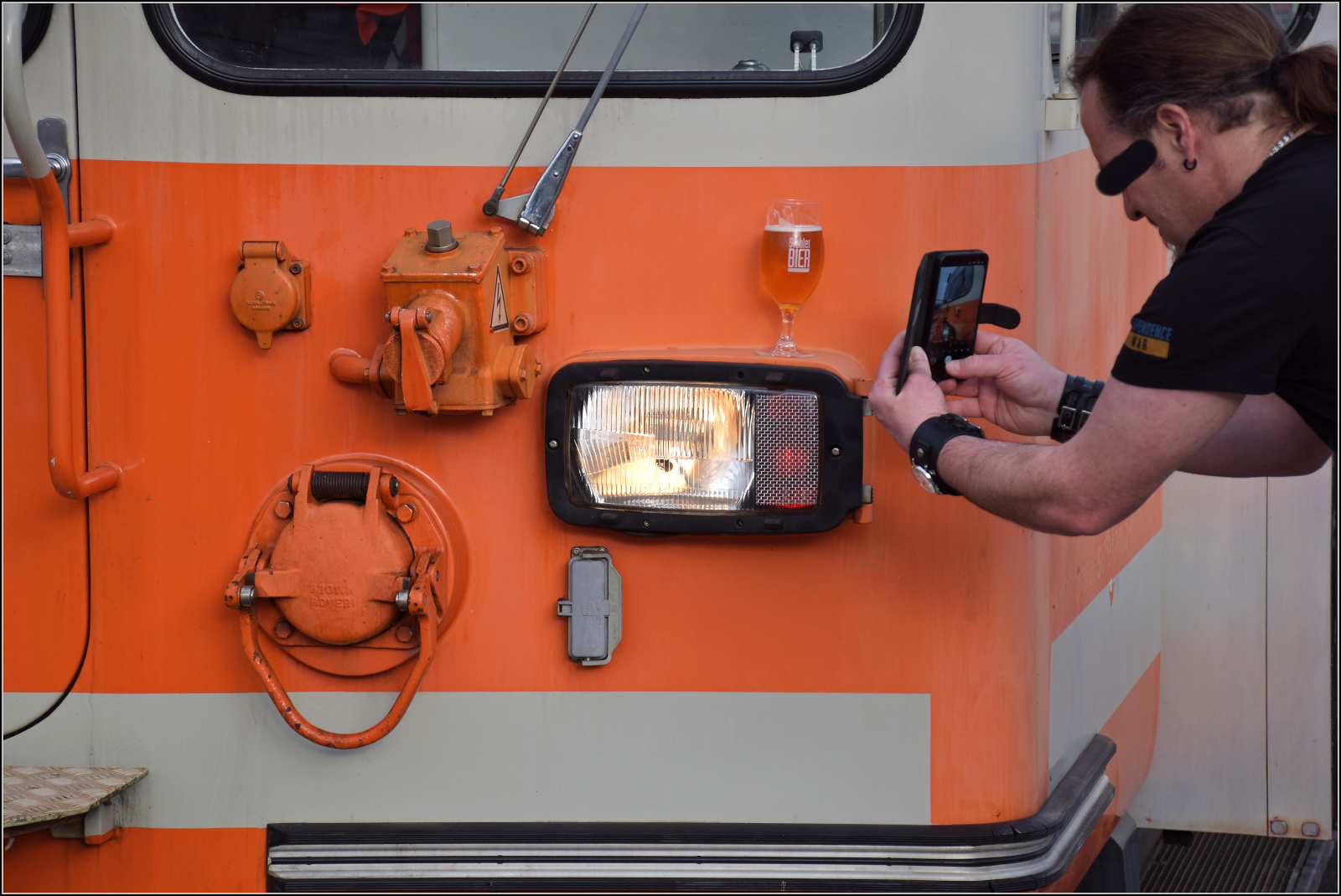 Als Bierstehtisch eignet sich Be 4/4 104 tatsächlich auch. Das passende Bild zur Bierlisi-Fahrt muss auch noch ins Handy... oder ins Netz. Solothurn, Februar 2026. Olli